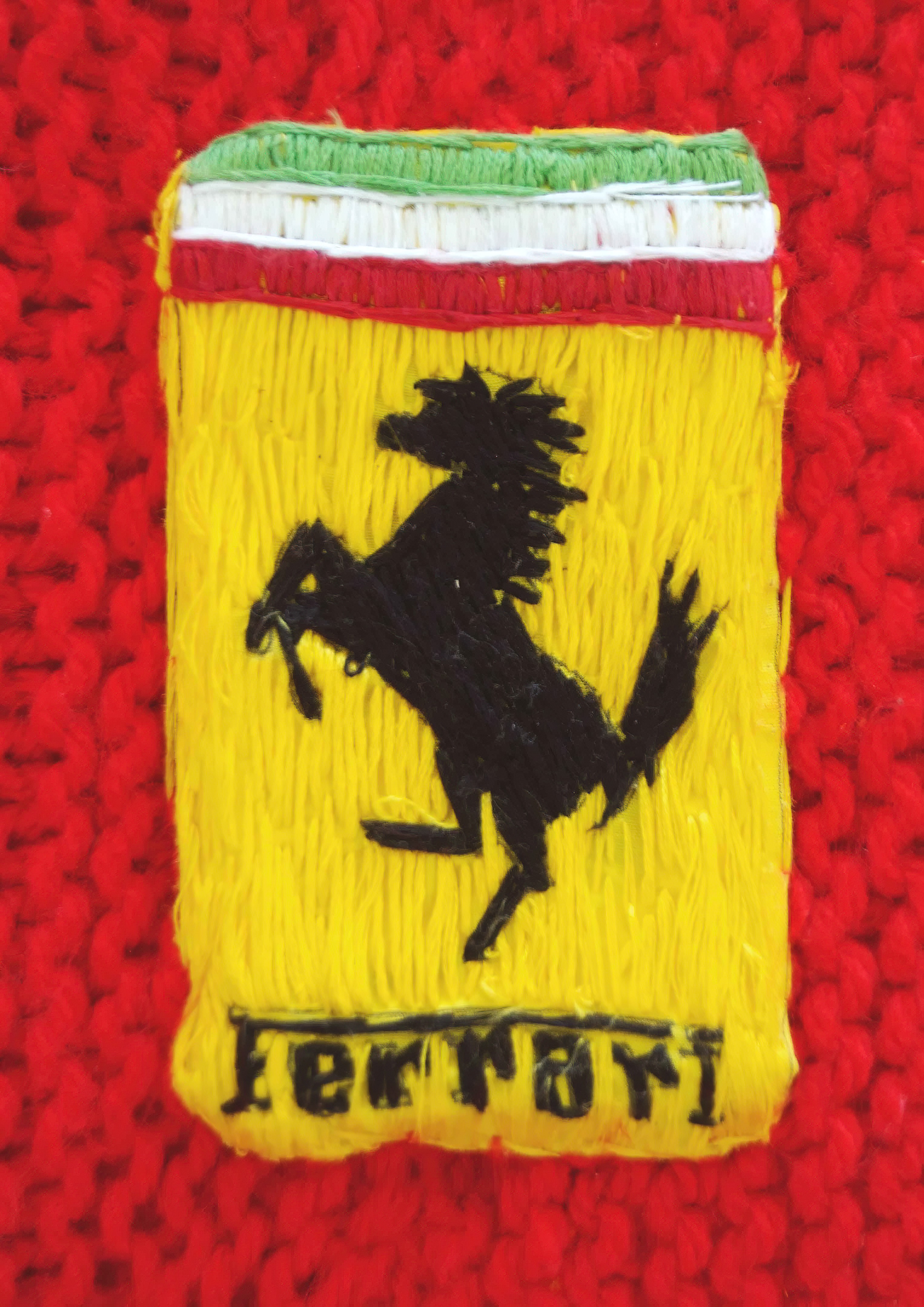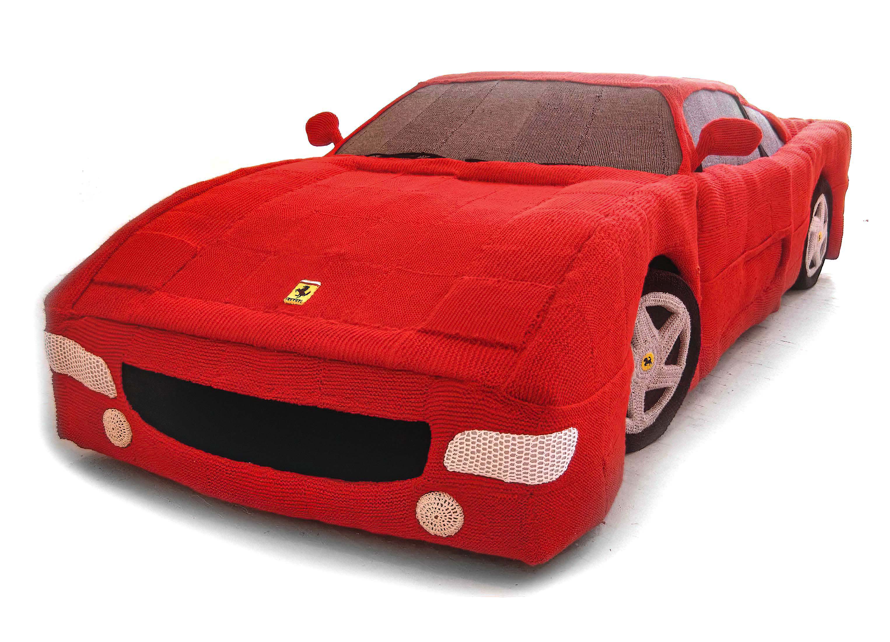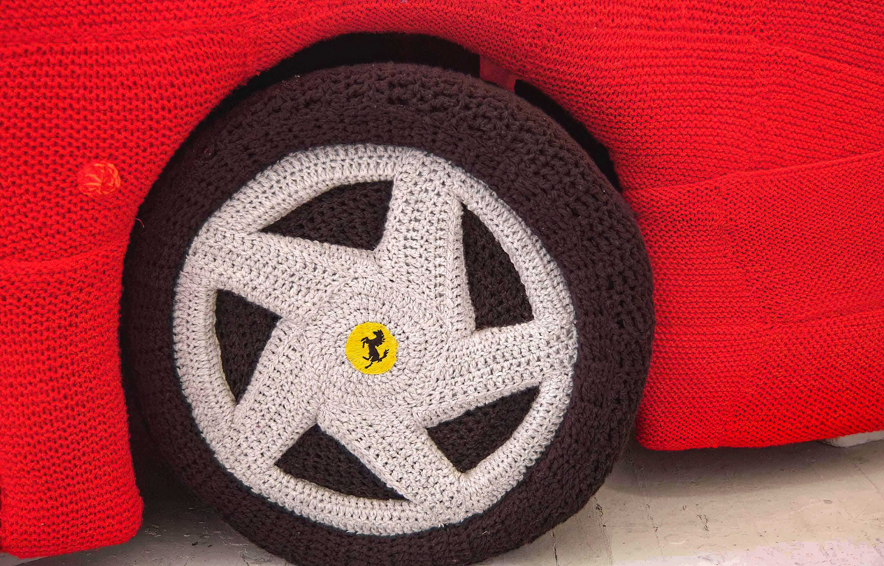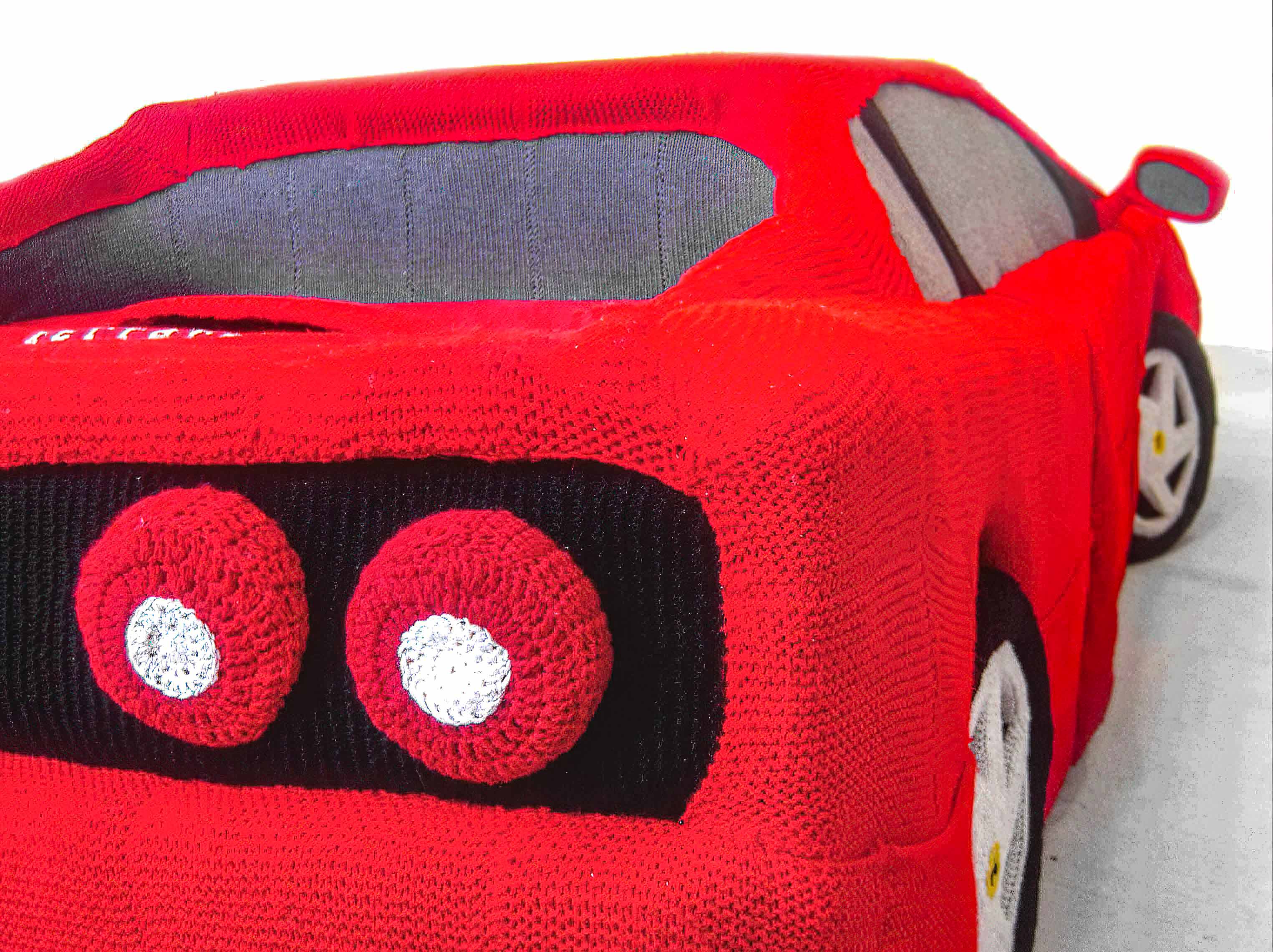 I made this piece for my undergraduate degree show when studying Fine Art at art school in Bath, UK. It was shown in various places around the UK and Europe including; art galleries, knitting shows, museums and an international motor show where it was displayed beside real Ferraris.