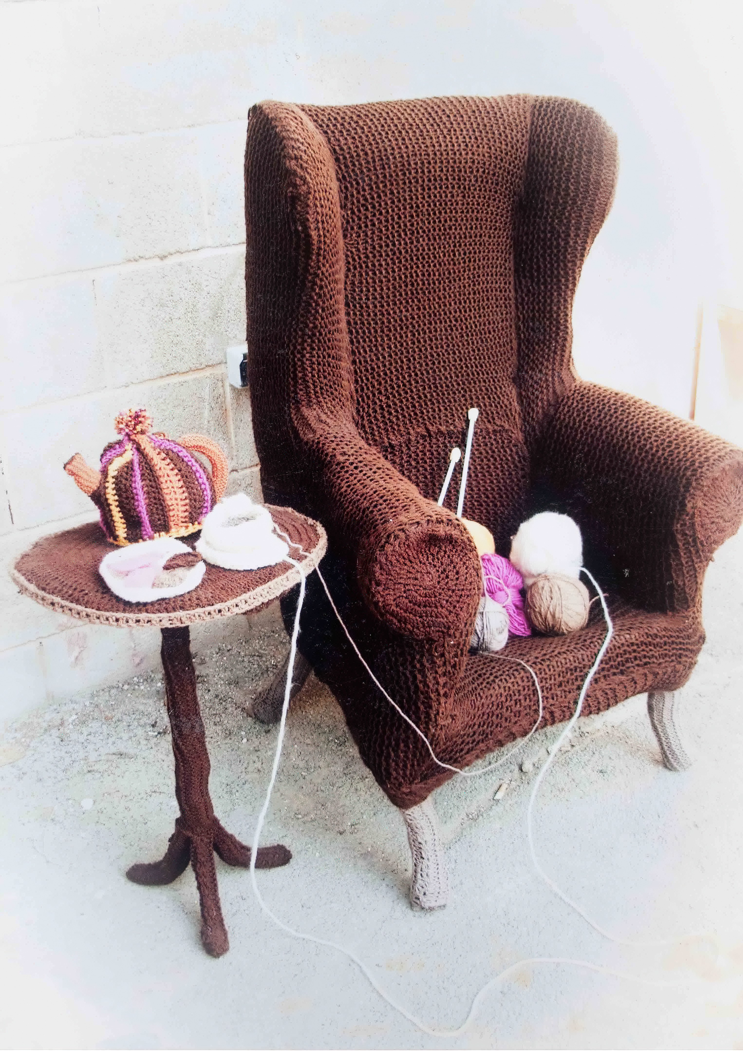 Before knitting a Ferrari I turned my hand to recreating domestic objects. I was originally inspired by a lady I cared for who spent her final years knitting, most hours of the day.